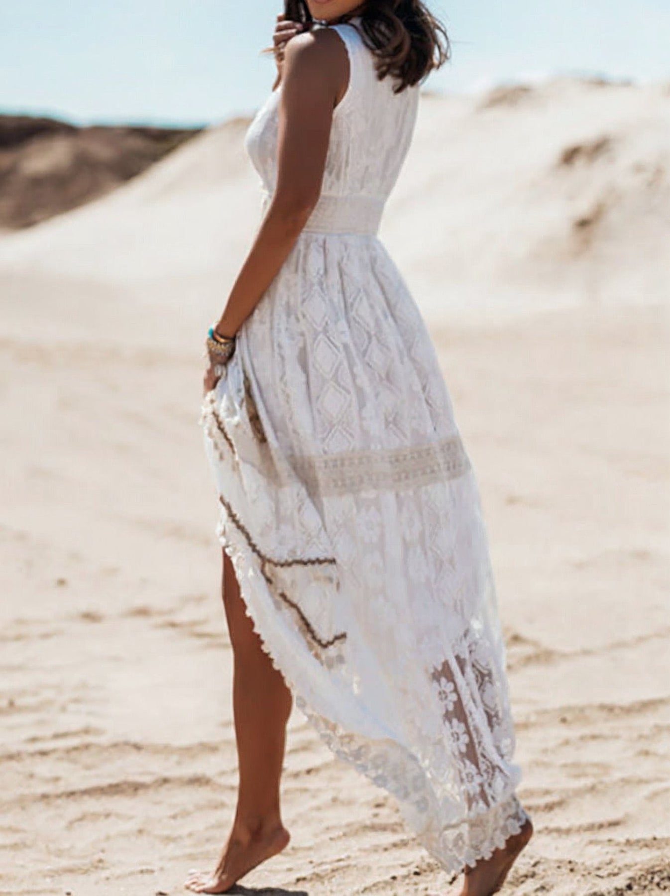 Boho Lace Maxi Dress – Sleeveless V-Neck Elegance